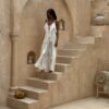 Élégant, aérien et infiniment féminin, cet ensemble blanc en voile de coton incarne la pureté et la fluidité signature de KITA DUA BALI. Conçu pour sublimer la silhouette avec légèreté, il associe un pantalon croisé à nouer et un long top vaporeux aux lignes délicates.